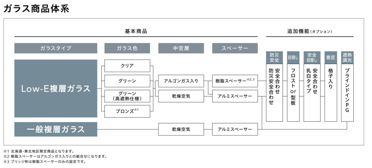 ガラスの仕様も豊富で、高性能なトリプルガラスも選択可能です。