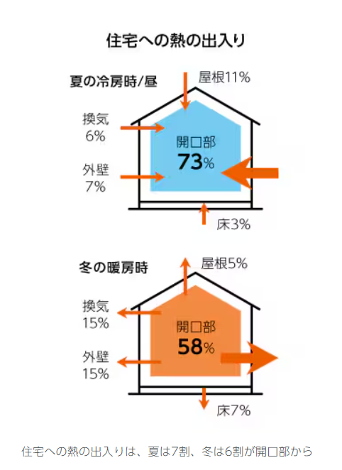 遮熱 外から侵入する熱を防ぐこと(主に窓からの熱対策)